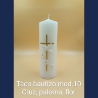 Cirio Bautizo Mod.10 Cruz Paloma Flor en medida de 6 cm de diametro y 20 cm de alto ( Disponible en otros tamaños).
